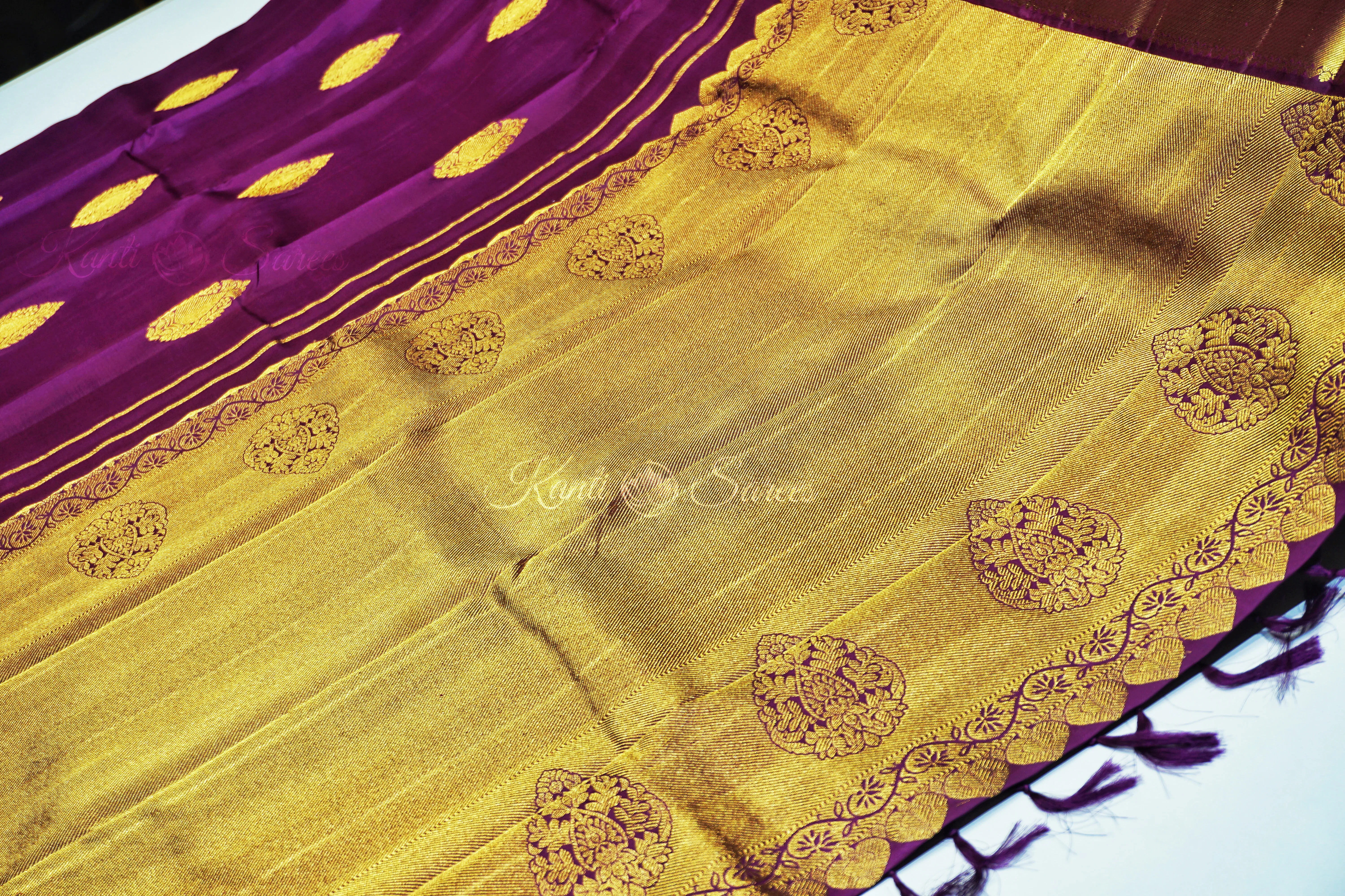 ✔ Woven with pure gold zari