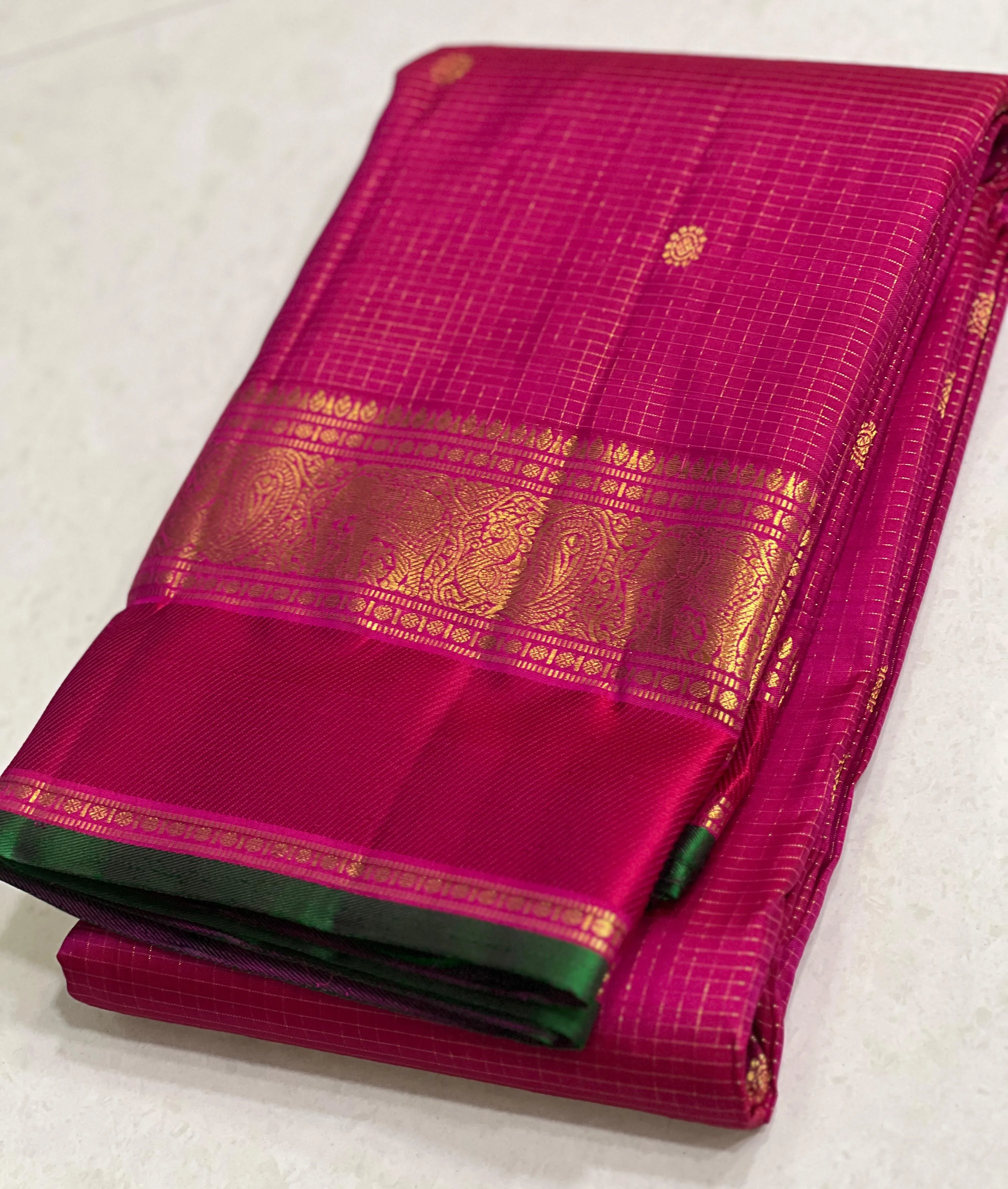 Retta Patta Border Kanchipuram Silk Saree In Rani Pink