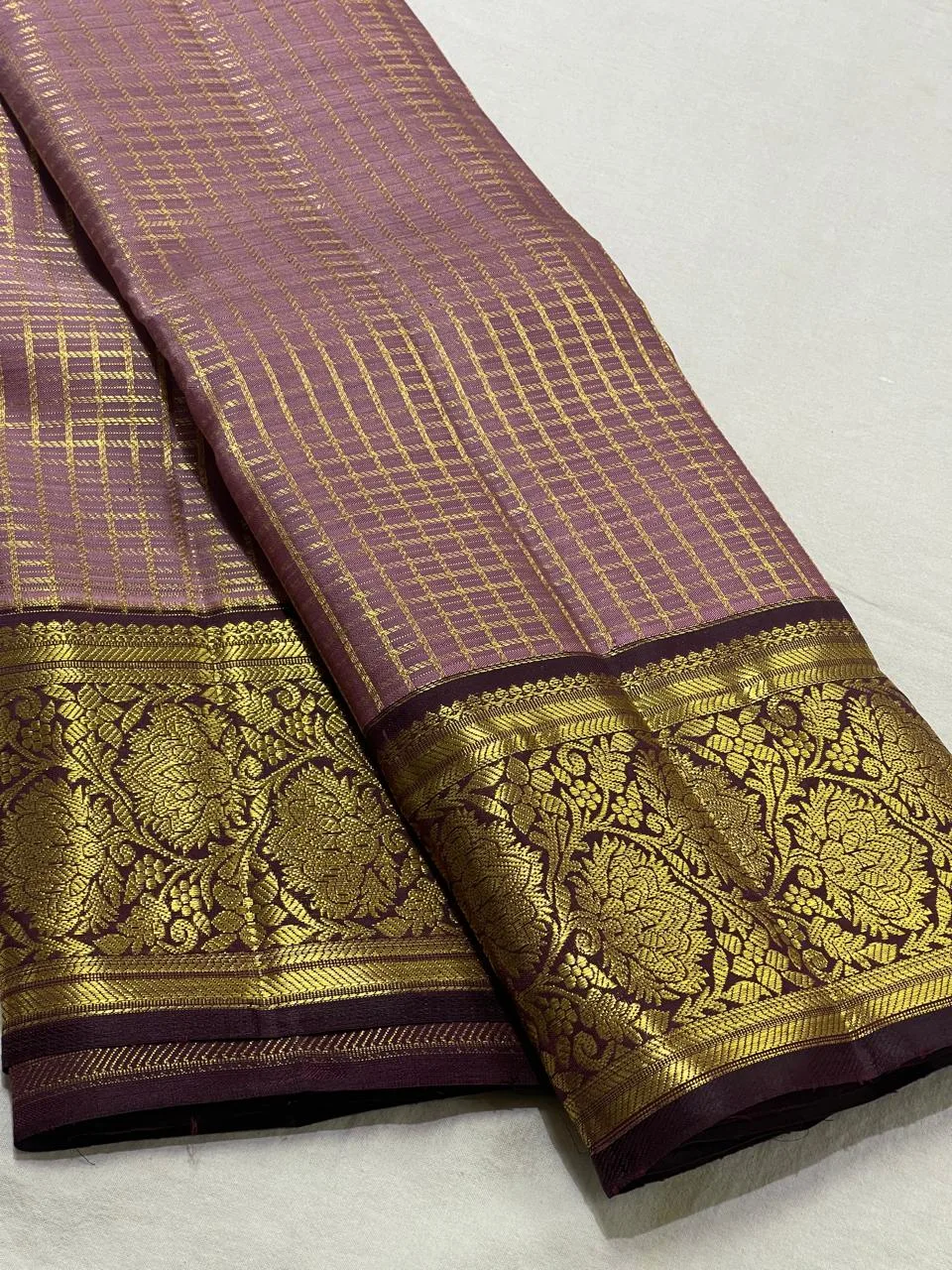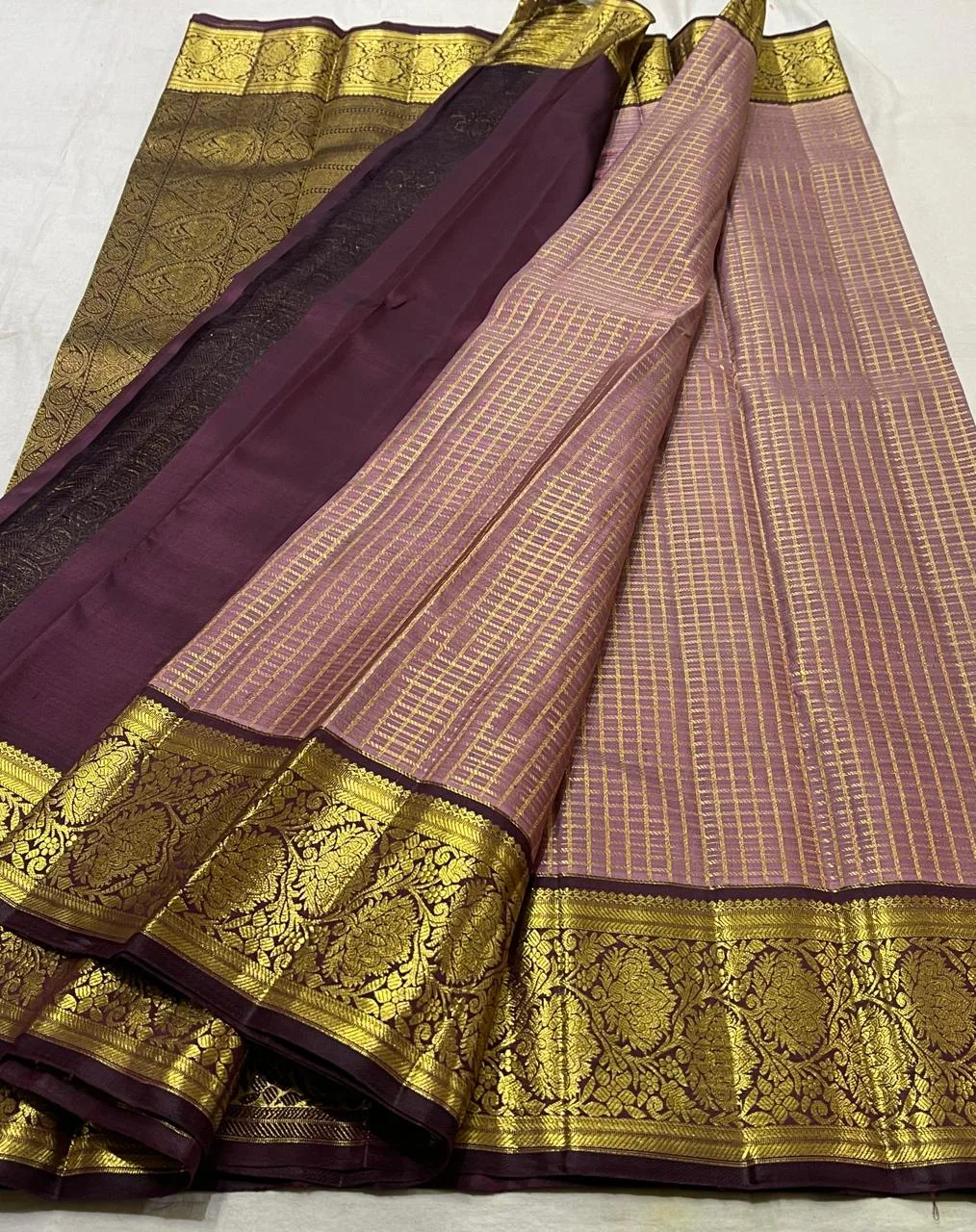 Kanchipuram Silk Saree In Lavender With Coffee Brown