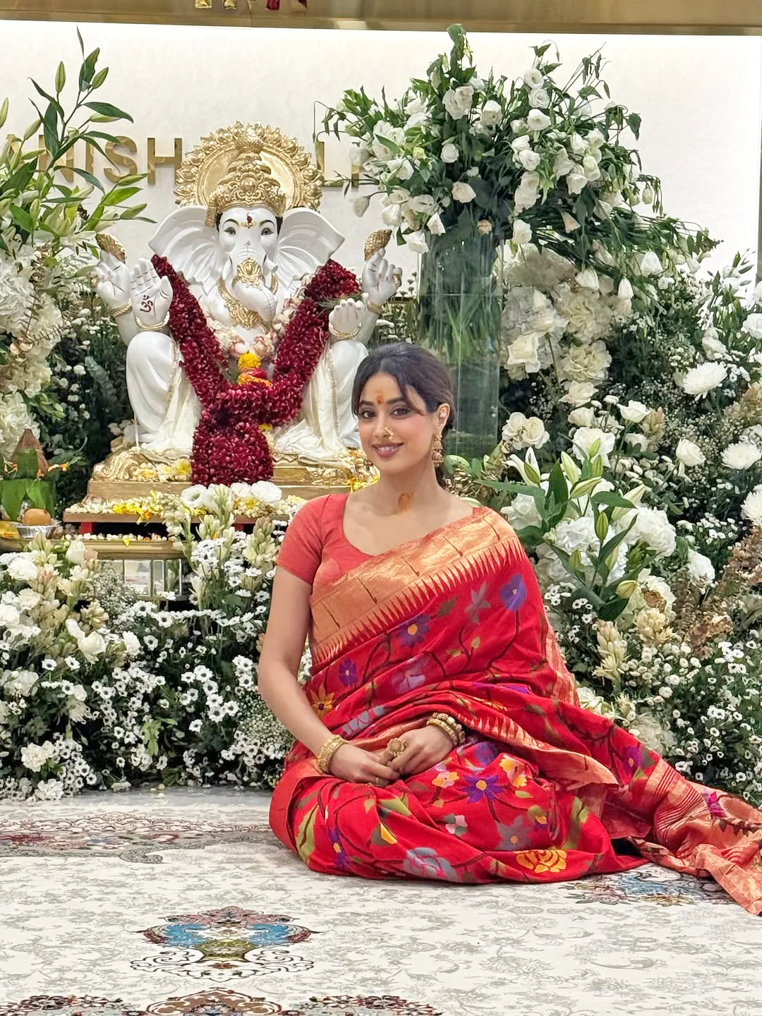 Janhvi Kapoor stuns in red floral saree at Ganesh Chaturthi bash
