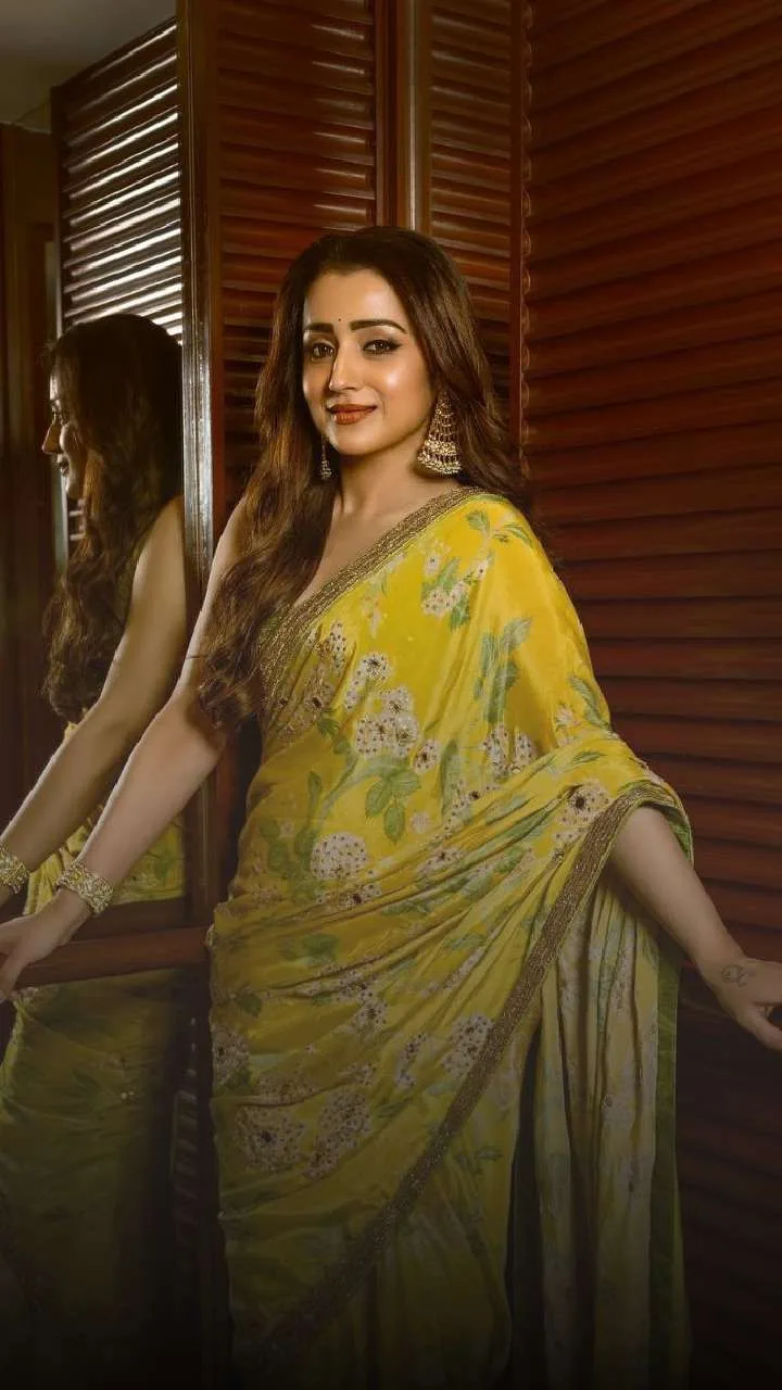 Trisha Krishnan Shines in Floral Yellow Saree Style